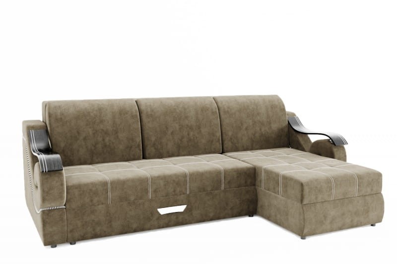 Особенности дивана: Отстрочка шёлковыми нитками, формованные подушки. Металлический каркас, наполнение - ППУ, МДФ подлокотники, бельевой ящик из ЛДСП, задняя планка. Механизм трансформации: еврокнижка на ортопедических латах. Два варианта раскладки для сна: первый - спальное место 1500х2650, второй достигается путём выкатки ящиков для белья, на которые сверху кладутся подушки.