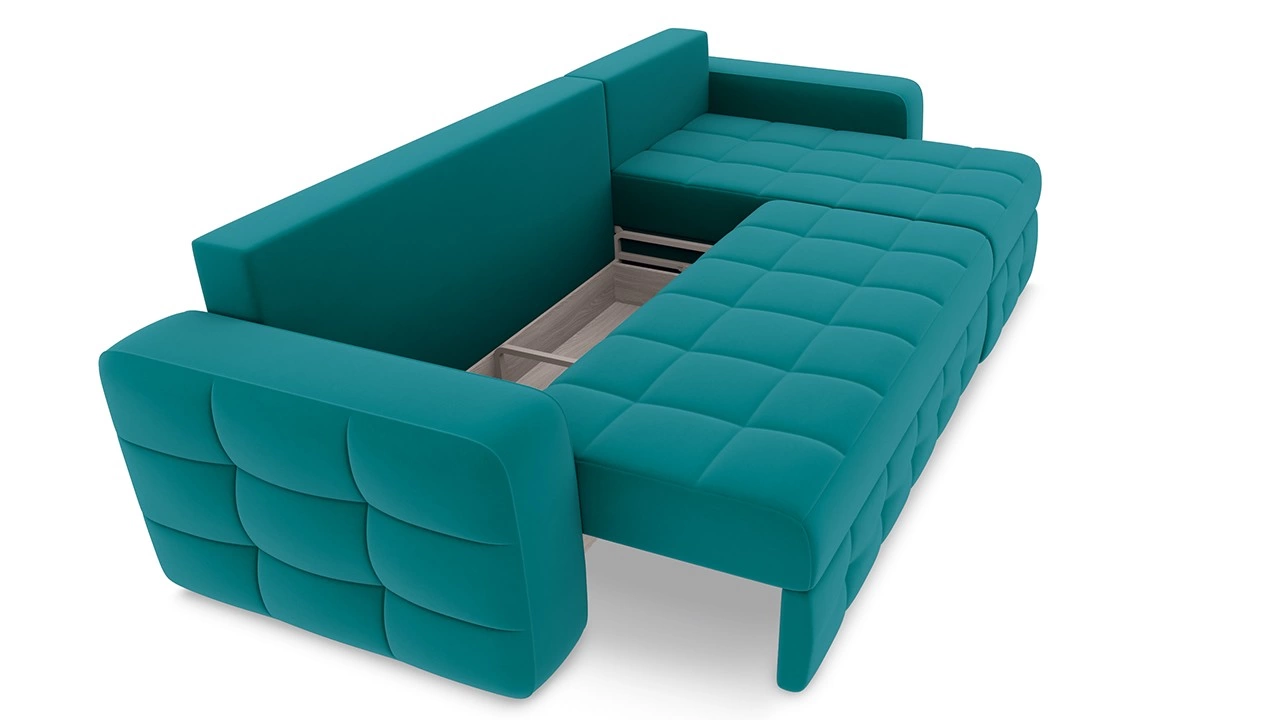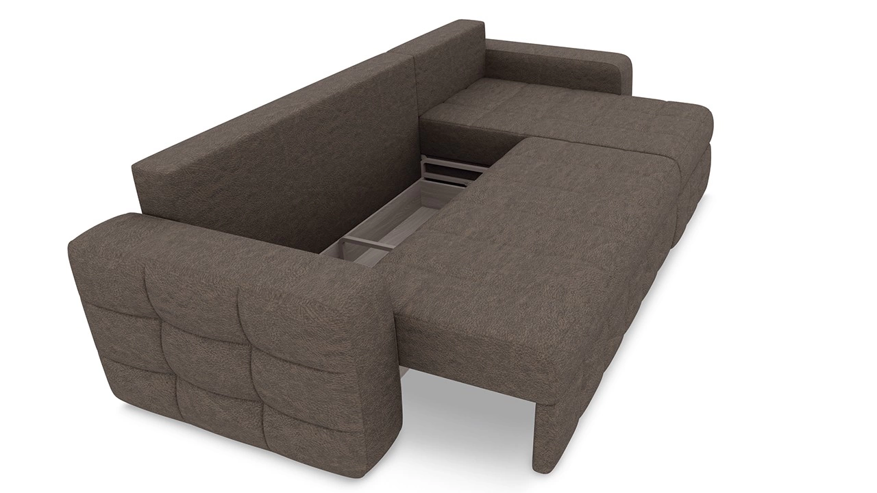 - Боковая сторона дивана имеет ящик для белья, открывающийся при помощи подъемного механизма.
